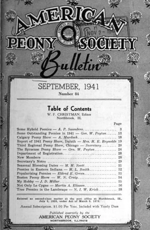 Older Bulletins from the American Peony Society (APS) can be downloaded or read here. All are available up through 2006. For current APS Bulletins and other benefits please consider membership in the APS.