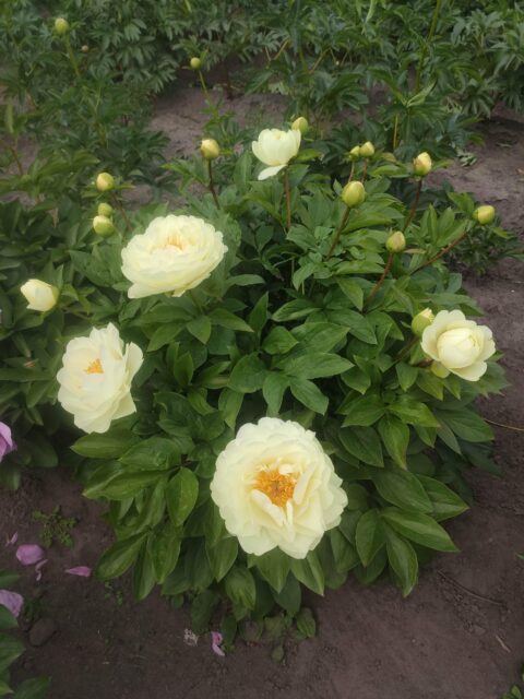 A good growing habit in our opinion means that the plants will stand up straight without falling over when the weather is somewhat adverse. It also means that the plants should not be overly prone to diseases, that they should grow well, be rather floriferous and and always open well. That also means that ‘open buds’ should be avoided as is so often the case in many currently registered cultivars. A pretty flower is also important of course, but that in itself will surely not be sufficient here. Some good examples of better known peonies that fullfill these requirements are Old Faithful and Rozella (Reath, 1990). Remark that Old Faithful may have ‘open buds’ but unlike others those buds and flowers stand adverse weather well, thus we can forgive her for that. We have a few fertile seedlings that can hopefully give those characteristics to their offspring. In the table you’ll find many crosses with PVBM003 and BMBBY001.