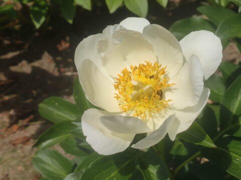 Here it does help to build upon work by others and exchange plants, pollen and information with other hybridizers. So we have Andreas Maschke, an intersectional fertile backcross from Bartzella x Lemon Chiffon. We hope to end up with a cut flower that will hold in water but with leaflets, flowers and a fragrance more of tree peonies.