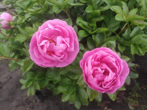 PVBM003 is a selection from the cross Pink Vanguard (Seidl/Hollingsworth, 2005) x Buoy Master (Fawkner, 2011). It has leaflets down to the soil, very sturdy upright stems, dark green healthy foliage, closed buds and semi-double pink flowers which resemble Blushing Princess somewhat. It is very fertile both ways and early flowering. What’s more, here it has shown to be more tolerant to poor growing conditions and fungus infections. We’ve had this one for several years and through several propagation cycles a few dozen plants are available each year to make crosses with.