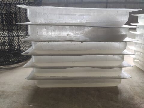 The silicagel boxes shown here can contain up to 500 ml of water each. These are from the box with the ‘wet’ peonies after 3 months. Four of them are fully saturated, two still have some spare silicagel (the two uppermost ones). In the box with the ‘dry’ peonies, all silicagel boxes were saturated after this time, but there were somewhat more stems in that box.