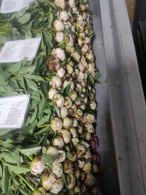 - Peonies were cut and placed directly into an ULO box, thus they were not placed in water beforehand (‘dry’ storage)