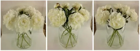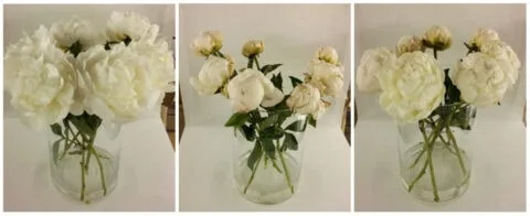 Madame Claude Tain after three days in water. Left immediately after cutting, middle after 10 weeks ULO, right after 10 weeks ULO + pyrimethanil treatment