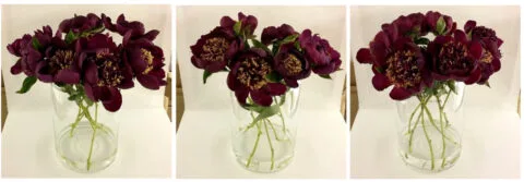 All in all, not much to be happy with, but one small coincidence does shine a light at the end of the tunnel. The last filled ULO box, with the smaller dried out stems, was opened at the end of August and, although there was also some condensation in it, this box contained a far higher proportion of healthy stems. Remarkably, the peonies that went in for the most part dried up, came out all fresh again as if they were able to rehydrate thanks to the higher relative humidity. And with hardly any botrytis or any of those ‘small white flecks’. The stems at the bottom had to be thrown away because there was standing water there from condensation, but the ones above them did look great. What’s more, when these were placed in a vase, they tended to open very well with, as far as I could see, no real difference with freshly cut ones. I think you’d agree with me that the following two images of peonies stored for so long are quite heartening.