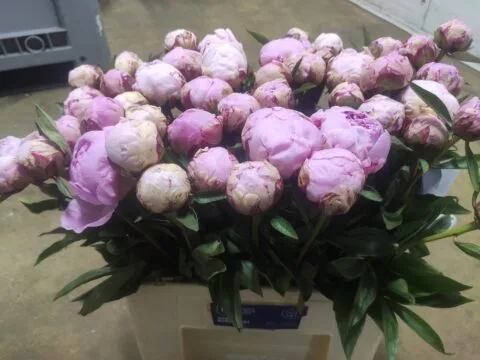The Fawn peonies we used for our ULO storage boxes were cut halfway June, during dry weather, put in the boxes dry (thus no hydrating beforehand), cooled down and then the boxes were closed after some 24 hours with lots of silicagel in it. Into the boxes we also placed an average of 3 containers silicagel / month intended. Each could suck up some 500 ml of water and given that we aimed for 2 – 4 months, some 6 to 12 such containers were placed in the ULO boxes. The number of stems in it was between 700 and 1,100, always leaving free some 10 cm at least from the top cover of the box. The time of closing those boxes was June 12-14 and temperature was kept below 1°C. The advised number of stems in an ULO box is some 800, we also had some with those numbers. The 1,100 was because we could simply but so many in and it would not be surprising to find that other growers would want to do that as well for it obviously restults in a lower cost per stem. The 700 stems box was only half full, this was the very last one we filled, June 14 and it contained some smaller stems that had been laying in the cold storage for over a week but hadn’t been prepared due to time constraints. Given that at that time wholesale prices were at a season’s low and we had one ULO box left but no other peonies to fill it with we simply decided to use them. Even though they were somewhat dried out and although we normally only use larger fresh ones.