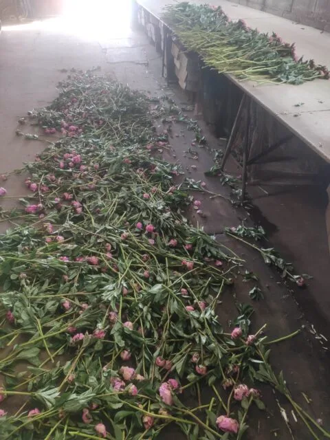 Long story short, boxes with only 6 silicagel containers were terrible and the peonies full of botrytis. The 12 container versions fared better, botrytis levels were far lower there. But there was another issue. A very large number of them had small transparent to white flecks on the petals. Whilst you had to look good to see this, especially as it often only showed a few petal rows further inside the flower bud, those inconspicuous white marks invariably turned into dead tissue and in turn of course developed botrytis, making them worthless. The PCS did not have this problem, so it may be a consequence of my extremely low oxygen levels the peonies experienced for a short time. On the other hand, not all boxes went so low and that kind of damage showed up in nearly all ULO boxes. The images show the problem pretty clear I think. With the best boxes I had to do careful checking of each and every stem. This was a lot of work and knowing what awaited me each time when I would open another ULO box was quite discouraging. But eventually a few thousand stems could be sold in August to make up for at least some of the losses.