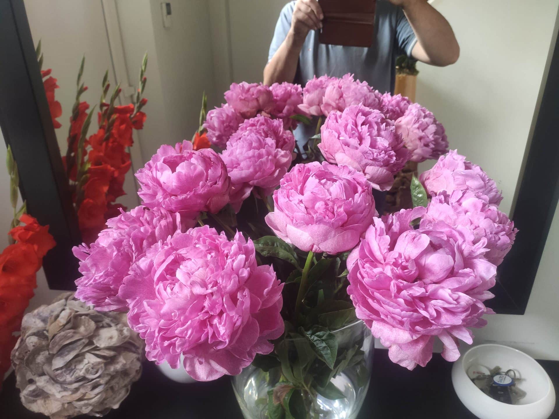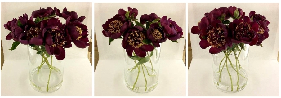 All in all, not much to be happy with, but one small coincidence does shine a light at the end of the tunnel. The last filled ULO box, with the smaller dried out stems, was opened at the end of August and, although there was also some condensation in it, this box contained a far higher proportion of healthy stems. Remarkably, the peonies that went in for the most part dried up, came out all fresh again as if they were able to rehydrate thanks to the higher relative humidity. And with hardly any botrytis or any of those ‘small white flecks’. The stems at the bottom had to be thrown away because there was standing water there from condensation, but the ones above them did look great. What’s more, when these were placed in a vase, they tended to open very well with, as far as I could see, no real difference with freshly cut ones. I think you’d agree with me that the following two images of peonies stored for so long are quite heartening.