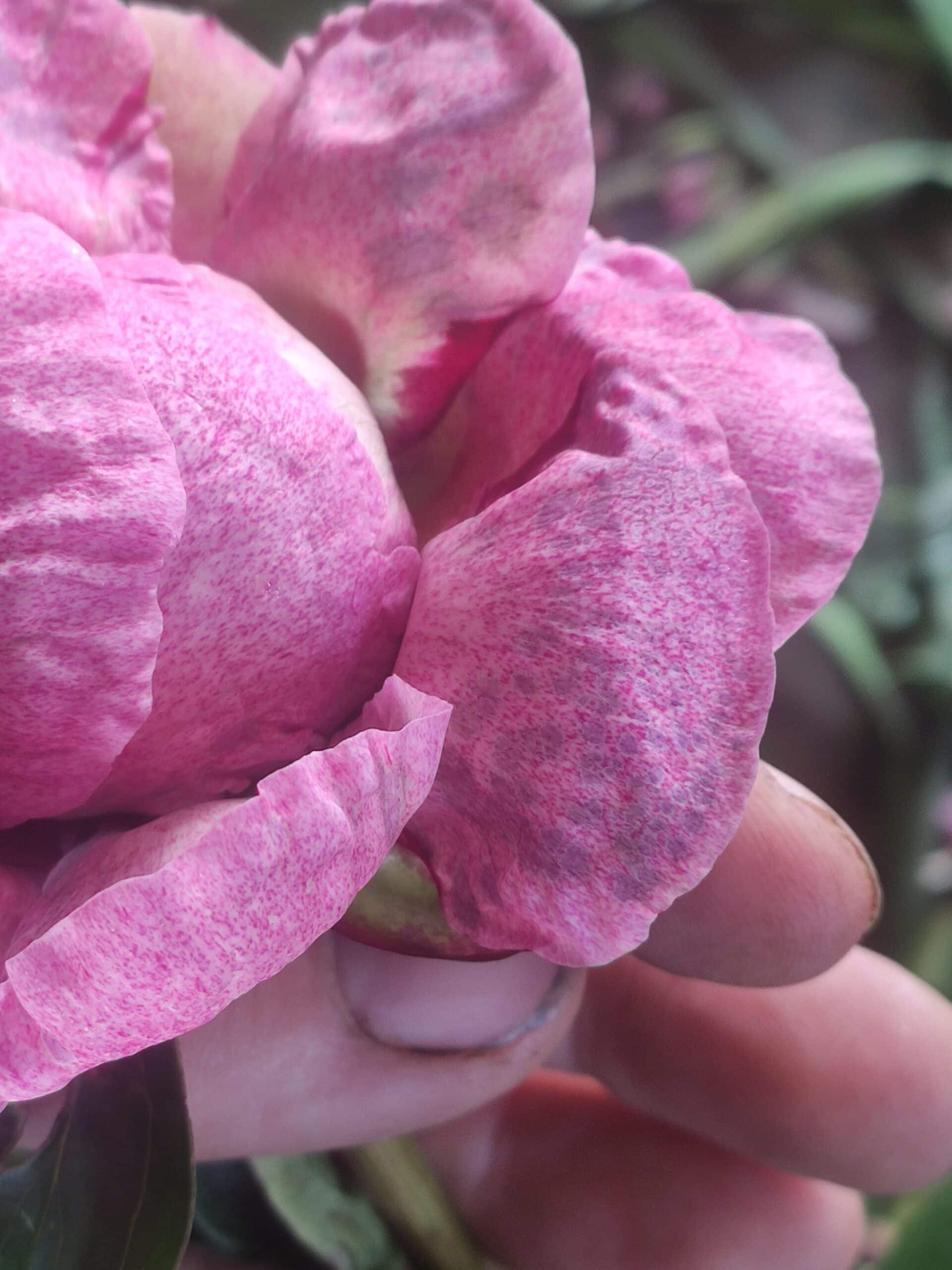 Long story short, boxes with only 6 silicagel containers were terrible and the peonies full of botrytis. The 12 container versions fared better, botrytis levels were far lower there. But there was another issue. A very large number of them had small transparent to white flecks on the petals. Whilst you had to look good to see this, especially as it often only showed a few petal rows further inside the flower bud, those inconspicuous white marks invariably turned into dead tissue and in turn of course developed botrytis, making them worthless. The PCS did not have this problem, so it may be a consequence of my extremely low oxygen levels the peonies experienced for a short time. On the other hand, not all boxes went so low and that kind of damage showed up in nearly all ULO boxes. The images show the problem pretty clear I think. With the best boxes I had to do careful checking of each and every stem. This was a lot of work and knowing what awaited me each time when I would open another ULO box was quite discouraging. But eventually a few thousand stems could be sold in August to make up for at least some of the losses.