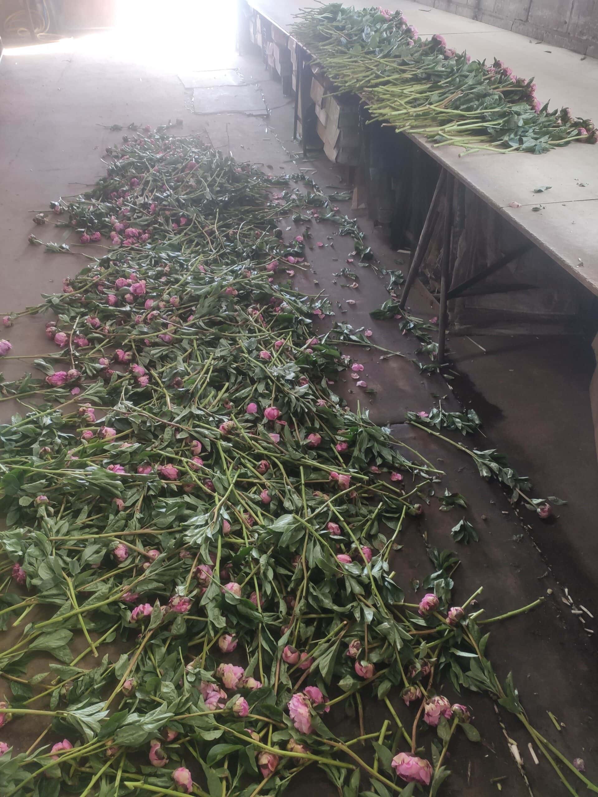 Let’s first start with the season itself because it was an exceptional one. The main reason for this is that it was the coldest and wettest in decades. Temperatures remained far below longtime averages right up until flowering time, which was some 2-3 weeks later than what we are used to. Of course when that time finally arrived, a heat wave struck, complicating matters even more with everything flowering in a very short time span. This all resulted in very high disease pressure on the plants, with in the general market numerous complaints about botrytis on the foliage and flowerbuds. We ourselves had it more or less under control, although some peony rows that were hard to reach when spraying were also severely affected, but these were wisely not cut. Still, without a doubt, this year we had to start with peony stems that will have had some more latent infections of botrytis, which is not a good starting point, but there’s nothing to choose here. On the positive side however: the cultivar we use most, The Fawn, usually has ‘open’ buds which may be more sensitive to botrytis infection on the inner petals compared to Sarah Bernhard which has closed buds and where the outer petals better protect the inner ones. This year, probably due to the long cold spell, The Fawn also had perfectly closed buds, something we’ve never before experienced.
