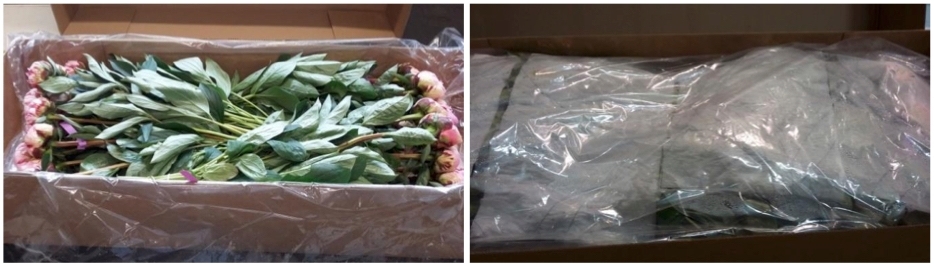 As usual the PCS also placed some stems in a simple cardboard box with plastic in it where the oxygen level would not be decreased but remain at ambient levels. The plastic is rather important here as it means humidity also remains rather high. To avoid excess humidity on the flowers in this plastic they were additionally wrapped into some normal paper as well within the plastic.