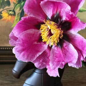 Gansu Mudan are tree Peonies with distinctive flares on the lower parts of the petals. Sometimes these are red, sometimes very dark, almost black, and at other times, not so obvious. These flares are known by the Chinese as ‘purple spots’.