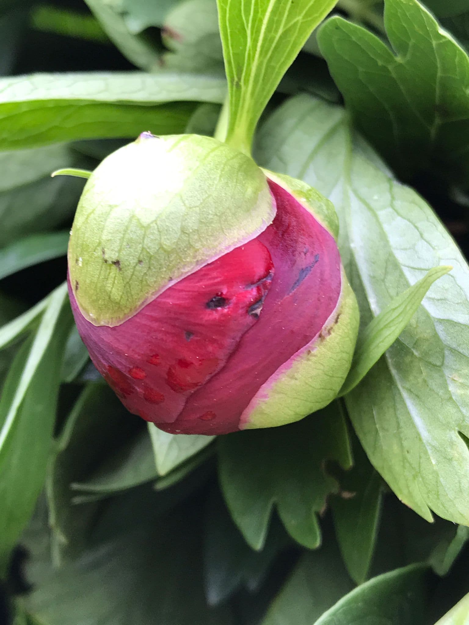 I’m always surprised to see how peonies react to late frosts. Early this morning and a few hours later, from terribly looking to standing firmly upright again. P. cambessedesii and P. wittmanniana.
