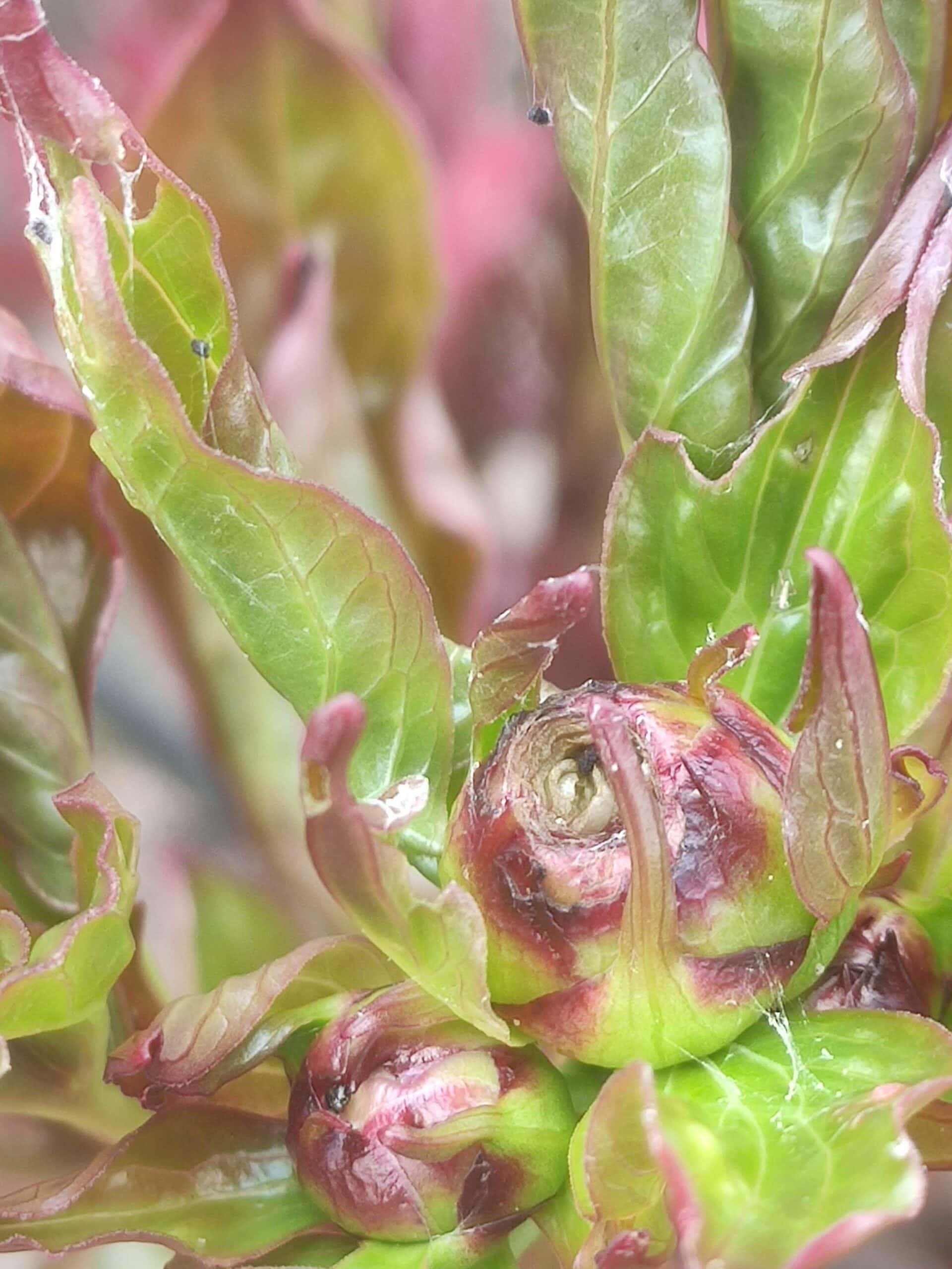 The peonies are growing strong, but it seems not all as good as last year. My tunnel with the whte lactiflore Mme. Claude Tain seems to have less stems than previous year and the sunny weather the last days has scorched some leaves, which results in botrytis of course. Fortunately the other varieties seem less susceptible. What caught my eye…Read More