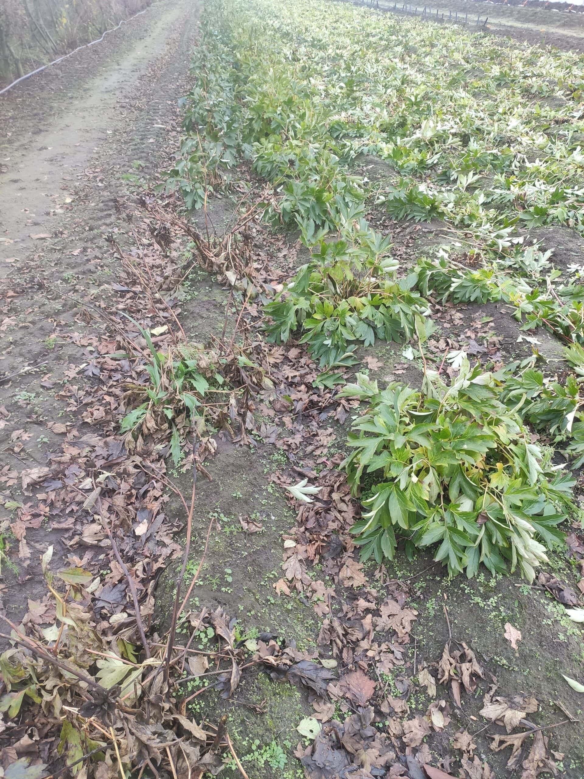 Dec 5th today, Canary Brilliants which rebloomed end of July after cutting down, is still standing green. The few plants in the front left row that hadn’t been cut back (the ‘comparison plants’), have no green foliage left. Mowing them all today as frost and snow is expected the following days. That clearly marks the end of the 2020 peony activities.