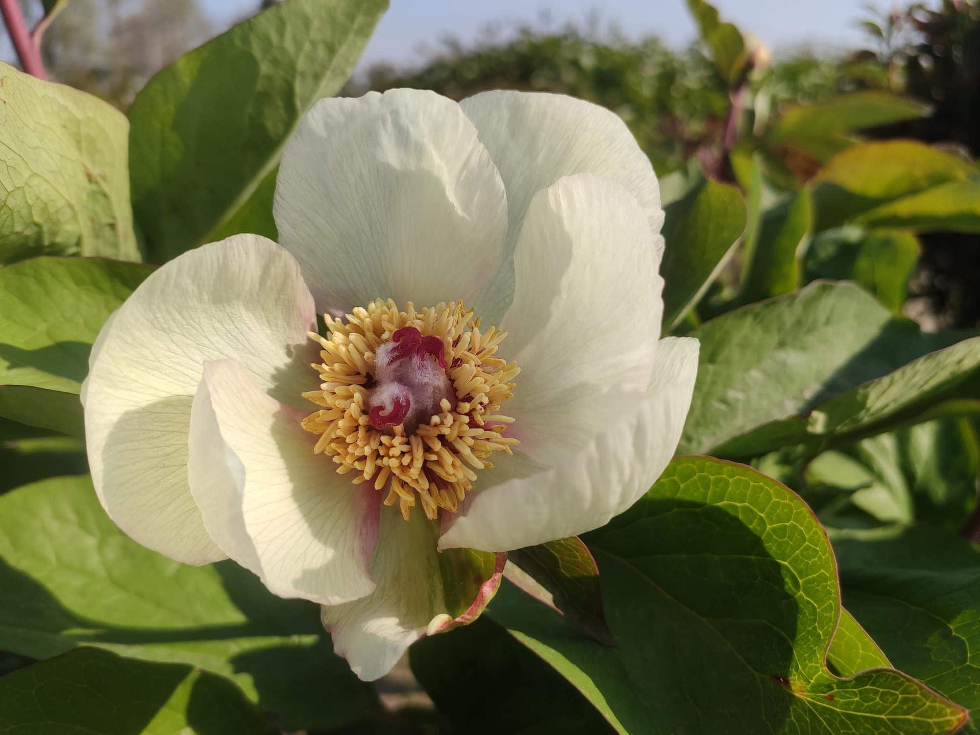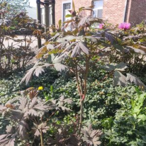 1 CommentShrubby peony ‘Anna Marie’. A Bill Seidl introduction which is easily available and which I can heartily recommend. Grows well, has very nice foliage as you can see and the flowers are also pretty.