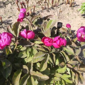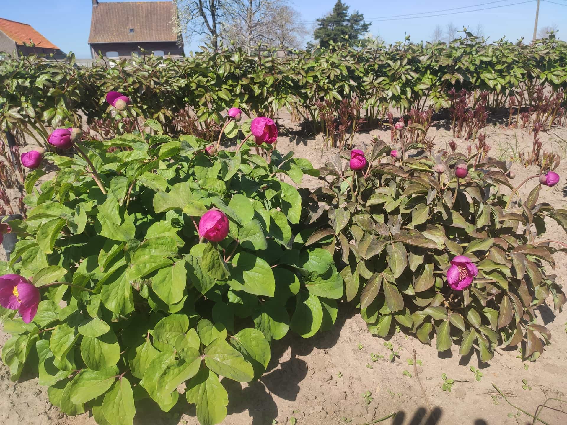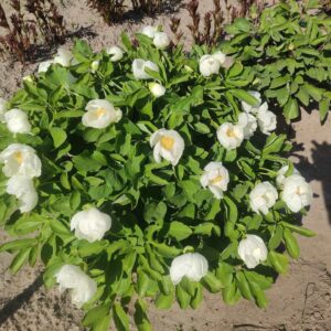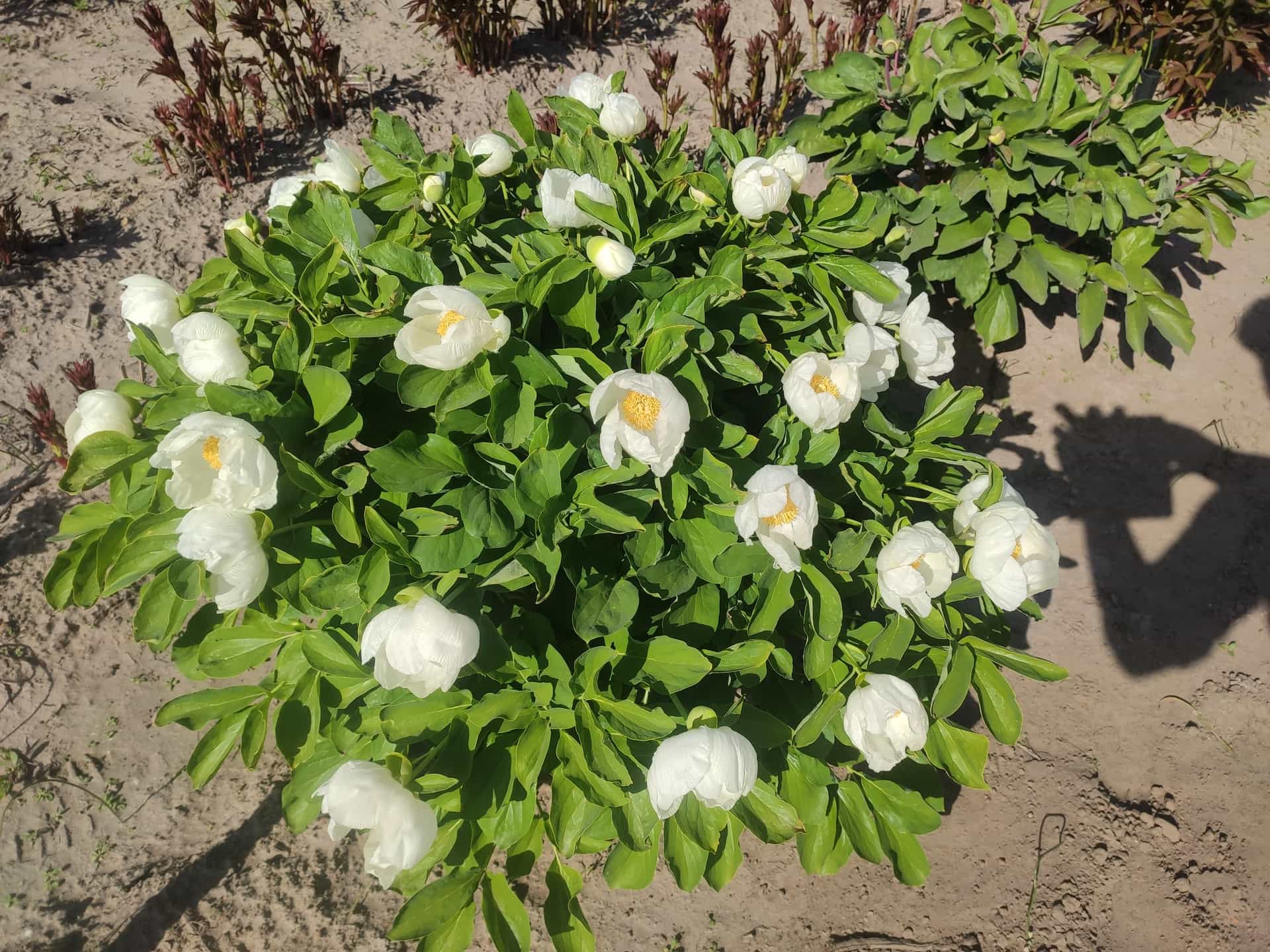 Two days later, more fully open. P. caucasica forma alba, P. daurica subsp daurica, P. daurica subsp coriifolia.