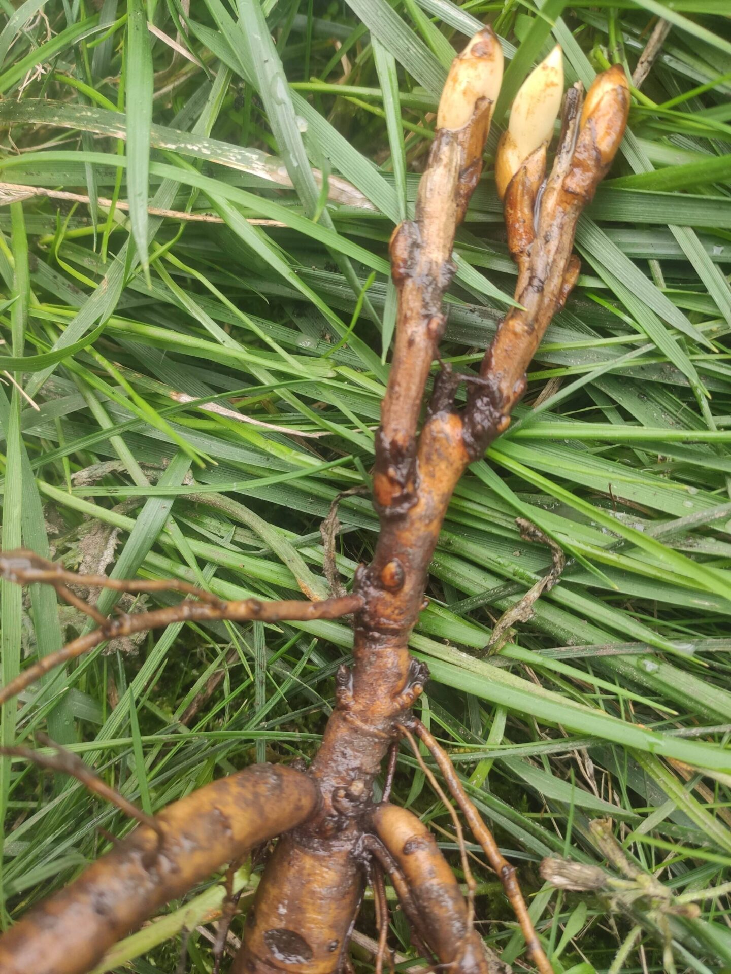 Paeonia brownii. The few seeds I received over the years usually germinated, but the seedlings always died pretty soon. Giessler peonies in Germany seems to have more knowledge and sells these wonderful roots. I cannot see whether they are grafted upon roots of P. delavayi as he is able to do, but I do hope to be able to grow it a least a few years.