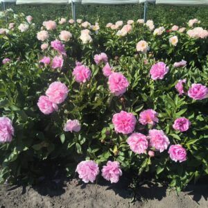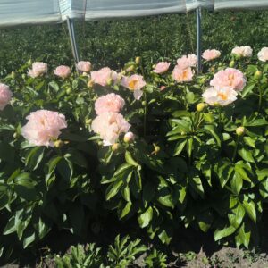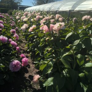 Early hybrids are blooming (Vanilla Schnapps, Ballerina, Pink Vanguard, Grand Massive…). Still too early for Red Charm. Pictures show a field of previously selected and propagated seedlings that eventually weren’t good enough. Six years old, so fully mature. Still a pretty sight I think.