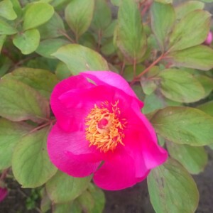 A seedling flowering for the first time. Should have been P. japonica. Clearly it isn’t. The leaflets have the correct shape, but a reddish pink flower isn’t and P. obovata it is neither as the carpels are tomentose. I quite like the white flare in the petals, it gives a conspicuous contrast.