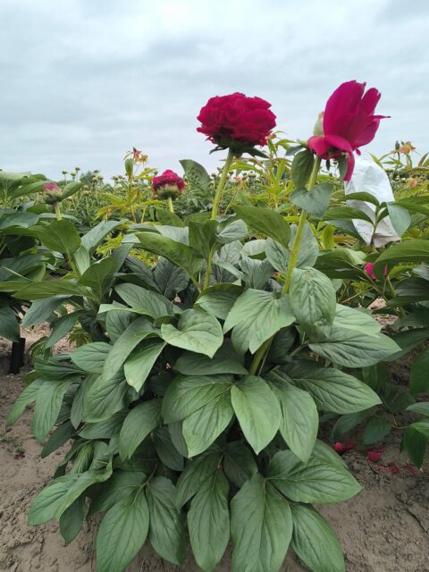 If you were to name a peony with extremely sturdy stems able to withstand adverse weather conditions, what would you say? Chances are Old Faithful will be the top pick for many people. Here, in a field where hundreds and hundreds of different cultivars have been grown it always stands out with those thick, sturdy and tall upright stems. Compared to the bulk of other commercially available cultivars its plant habit is far superior to most and personally I rank it amongst the very best peonies around. Many photographs of it can be found on instagram.