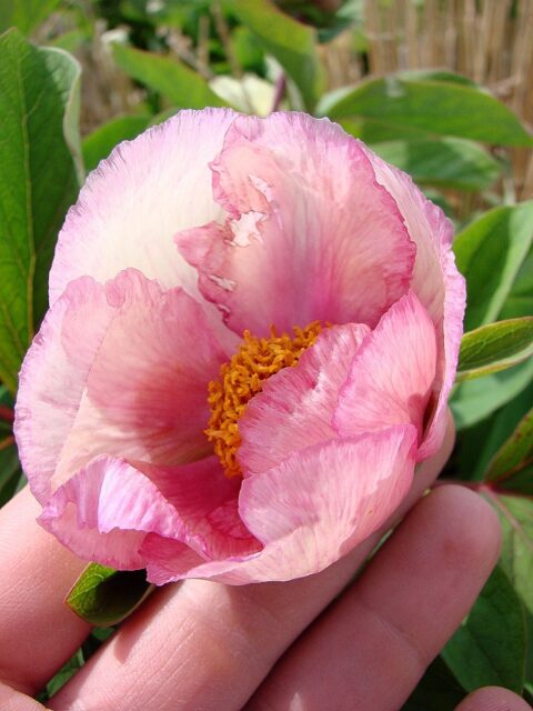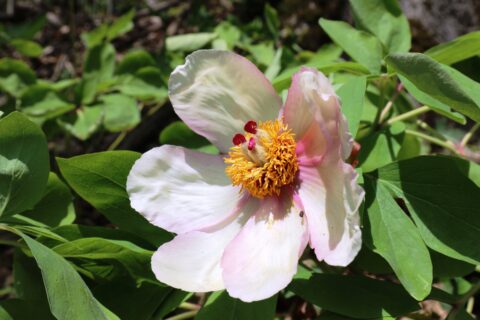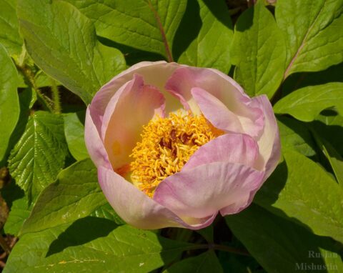 So, after going through all the species, have we come to a conclusion about what peonies A.P. Saunders actually used? Apart from the possibility that he mostly had garden hybrids, we actually did. He has registered many hybrids with either P. macrophylla and P. wittmanniana as one of the parents. Both of these plants were mislabeled. His “P. macrophylla”, a low plant with white flowers, tomentose carpels and deeply depressed veins should be P. tomentosa ssp archibaldii from the Easternmost region of the Hyrcanian forests (Mazandaran, Golestan provinces in Iran) along the Caspian Sea. The hybrid we admire so much, Ballerina, which was claimed to be from “P. wittmanniana” x P. lactiflora is actually from P. steveniana/P. macrophylla x P. lactiflora. Given that he states the very large leaves for his other plant and not this one, it will probably have been a plant not from Adjaria (P. macrophylla), but rather from Central Georgia (P. steveniana) as those latter have smaller leaflets. So to repeat his cross we’ll need some P. macrophylla/P. steveniana. As it happens the only flowering plant of the wittmanniana group we grow is P. wittmanniana ssp wittmanniana. As far as we know, A.P. Saunders never actually grew any true P. wittmanniana and his work is the foundation for the great majority of all modern day herbaceous hybrid plants. So whilst we have no short-term possibility to repeat his crosses in the hope of obtaining something alike Ballerina, we do have some options with P. wittmanniana at least, which is itself a very attractive plant.