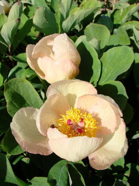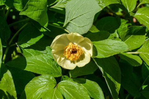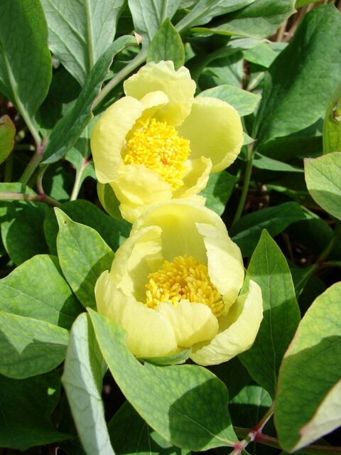 ‘Yellow’ is of course a broad color description and there are quite a few ‘yellow’ peonies in the Caucasus. It’s a color which is also difficult to photograph and depending on the camera and amount of light or shade you will often find that the image shows it deeper yellow or much paler, which means images can be a faulty guide. To give some guidance on the ‘yellow’ peony species of the caucasus, let’s list them according to their degree of ‘yellowness’. Remark however that even the most yellow species, P. wendelboi, will not be as deep yellow as you will see in P. delavayi (P. lutea).