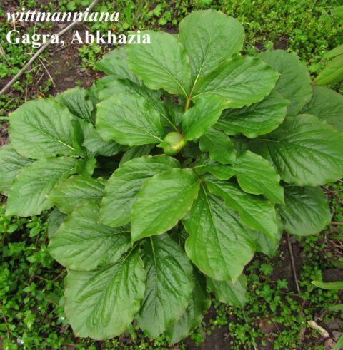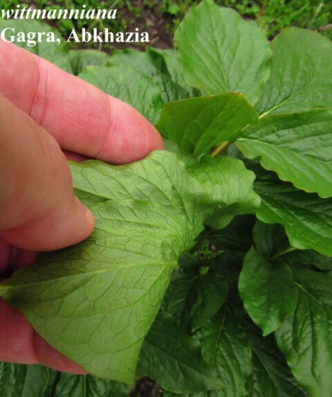 Along the Black Sea Coast of Russia towards Georgia and into Abkhazia (a de-facto autonomous region within Georgia) you can find the species which started this article: Paeonia wittmanniana. We don’t really like botanical nomenclature and we leave most of it behind when possible. But that can simply not be done here because of the terrible taxonomic mess. First of all two different species were given the same name in the span of a few years. Paeonia wittmanniana was first given to the species from Abkhazia with white flowers and tomentose carpels by Lindley, thus as those botanists would say: P. wittmanniana Hartwiss ex Lindley, 1846. A few years later another botanist, Steven, – unaware of this – named another species from Central Georgia with the same name: P. wittmanniana Steven, 1848. That last one was pale yellow and had glabrous carpels. It’s not difficult to imagine that the mess of the wittmanniana group all started here. The older description takes precedence in botanical nomenclature thus P. wittmanniana ex Lindley can be found growing in northwest Georgia, Abkhazia and adjacent Russia, mostly around Sochi.