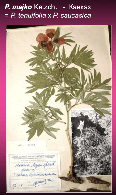 | Paeonia x maleevii (P. tenuifolia x P. daurica) | Crimea (Near the city of Alushta) |