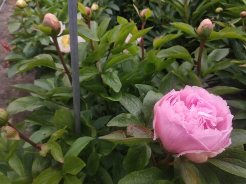 Were there any interesting cultivars this year? We were impressed by Nancy, a single pink flower but with enormous leaflets and standing straight up on incredible stout stems. It’s a lesser known advanced hybrid with P. macrophylla clearly showing its influence.