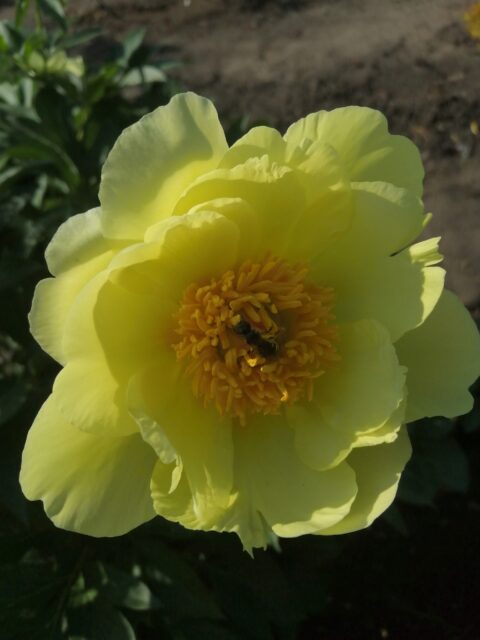 Фотон (Photon) (Bredikhin, 2023) Intersectional backcross (Bartzella x Lemon Chiffon). The flowers are cup-shaped, three rows of petals, and may become double with age. 16-17 cm in diameter. The petals are bright yellow with a lime tint. The color is uniform, without reddish streaks at the base. The scent is pleasant, citrus-like. The carpels are yellowish, 3-5 in number, and the stigmas are pink. Fertile in both directions.