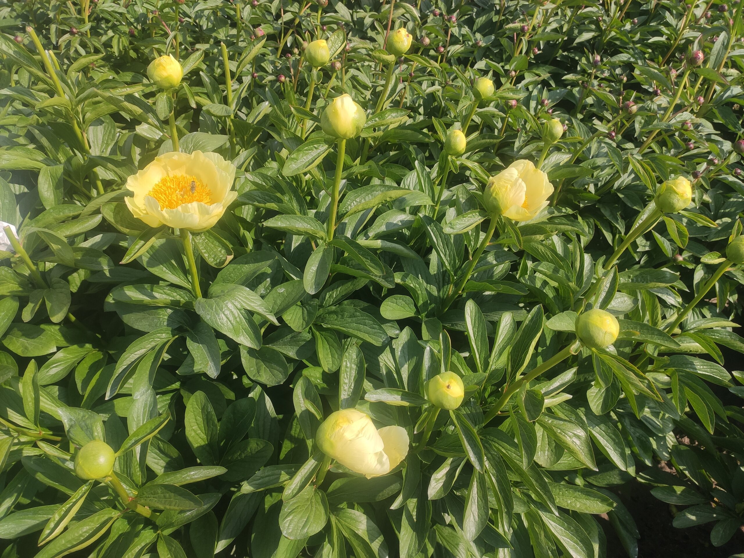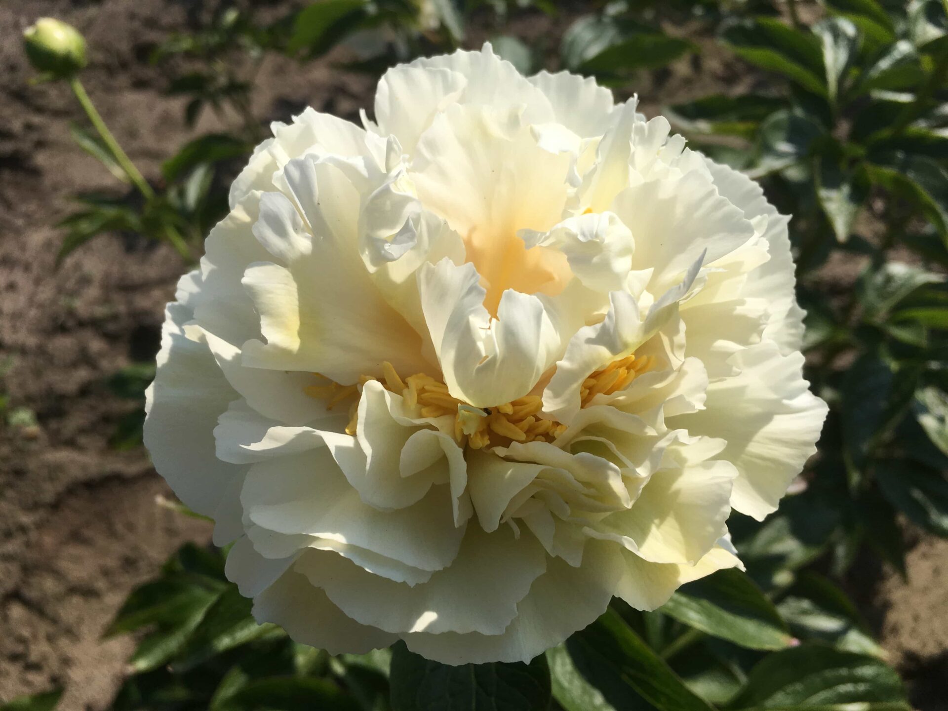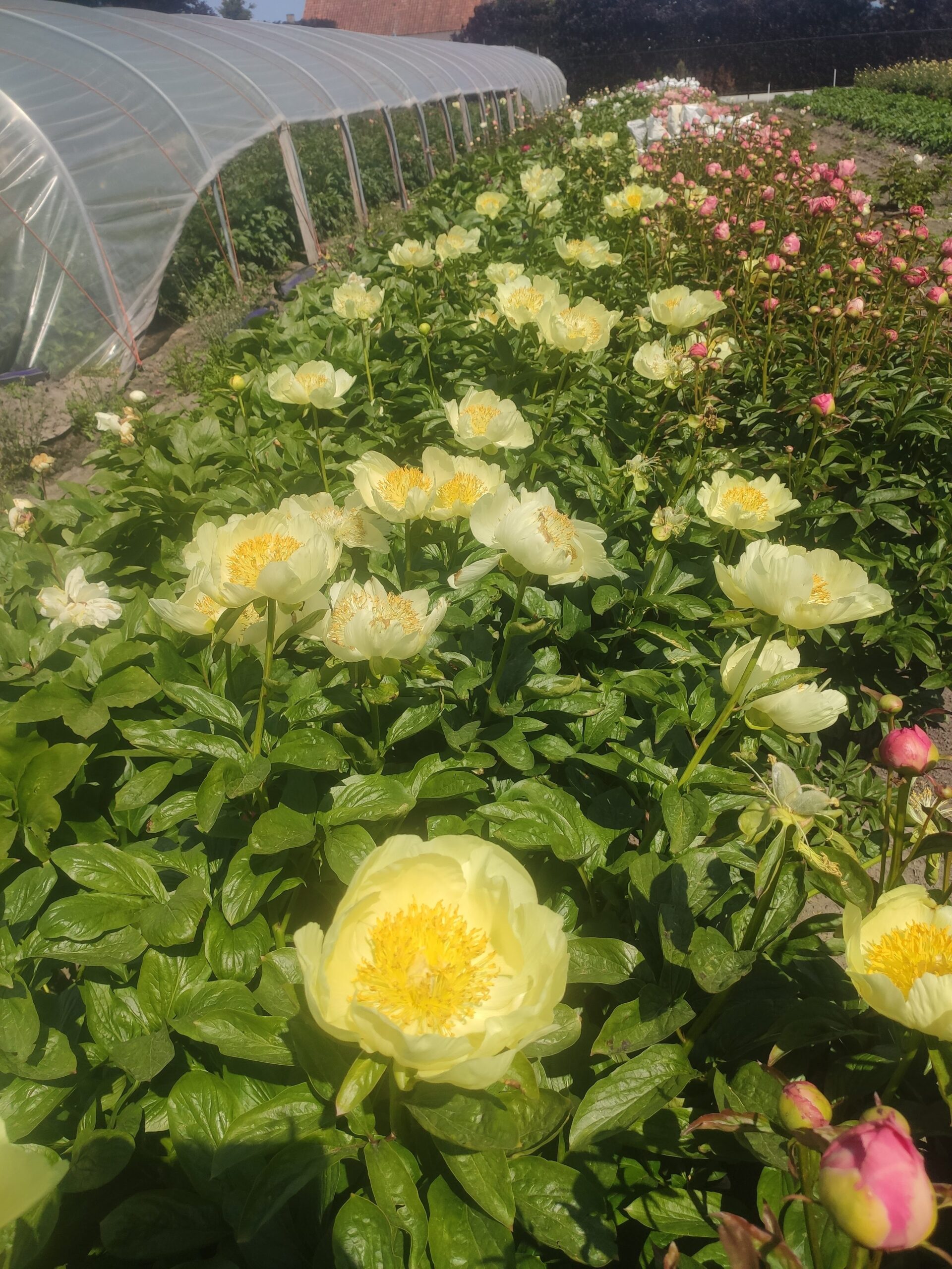 I first became interested in yellow-flowered plants (e.g, daffodils) at the age of 2. The very large gene pool we started with had its genetic point of invaluable origin in the fields of A.P. Saunders, Silvia Saunders, and Chris Laning. We worked exclusively with that, starting in the mid 1990s. We used a completely wild and reckless methodology, drastically different from the ‘logical’ outlook that used to be popular in Europe. Our methodology, or lack thereof, included a few key ideas formulated by Auten: “Try everything at least once,” “Use resultant seedlings, abandon parent.” We have done everything out in the fields, nothing indoors; used no machinery whatever. It has all been very manual. Our peony-thinking has been lightyears away from the scientific – which in the field of gardening we find unattractive, overly cerebral. Invaluable have been various pages and chapters in APS books like Wister, “The Peonies” and Kessenich: “The Best of 75 Years.” It should finally be mentioned that countless questions we have had about peony breeding have over the years been exhaustively clarified for us by the immensely helpful flow of answered letters received from Don Hollingsworth.