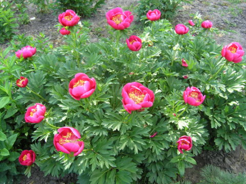 The primary goal of the second stage of hybridization was the creation of varieties with early and very early flowering periods. At that time, there were no herbaceous hybrids in the collection. Thus earliness could only be accomplished through hybridizing between different species. Paeonia officinalis ‘Rubra Plena’, ‘Rosea Plena’ and wild species of herbaceous peonies were involved in this hybridizing process. Genetic sources of important qualities for modern breeding, such as early and very early flowering, are the following species: P. arietina, P. anomala, P. officinalis, P. officinalis var. banatica, P. officinalis var. alba, P. peregrina, P. steveniana, P. tenuifolia and P. wittmanniana.