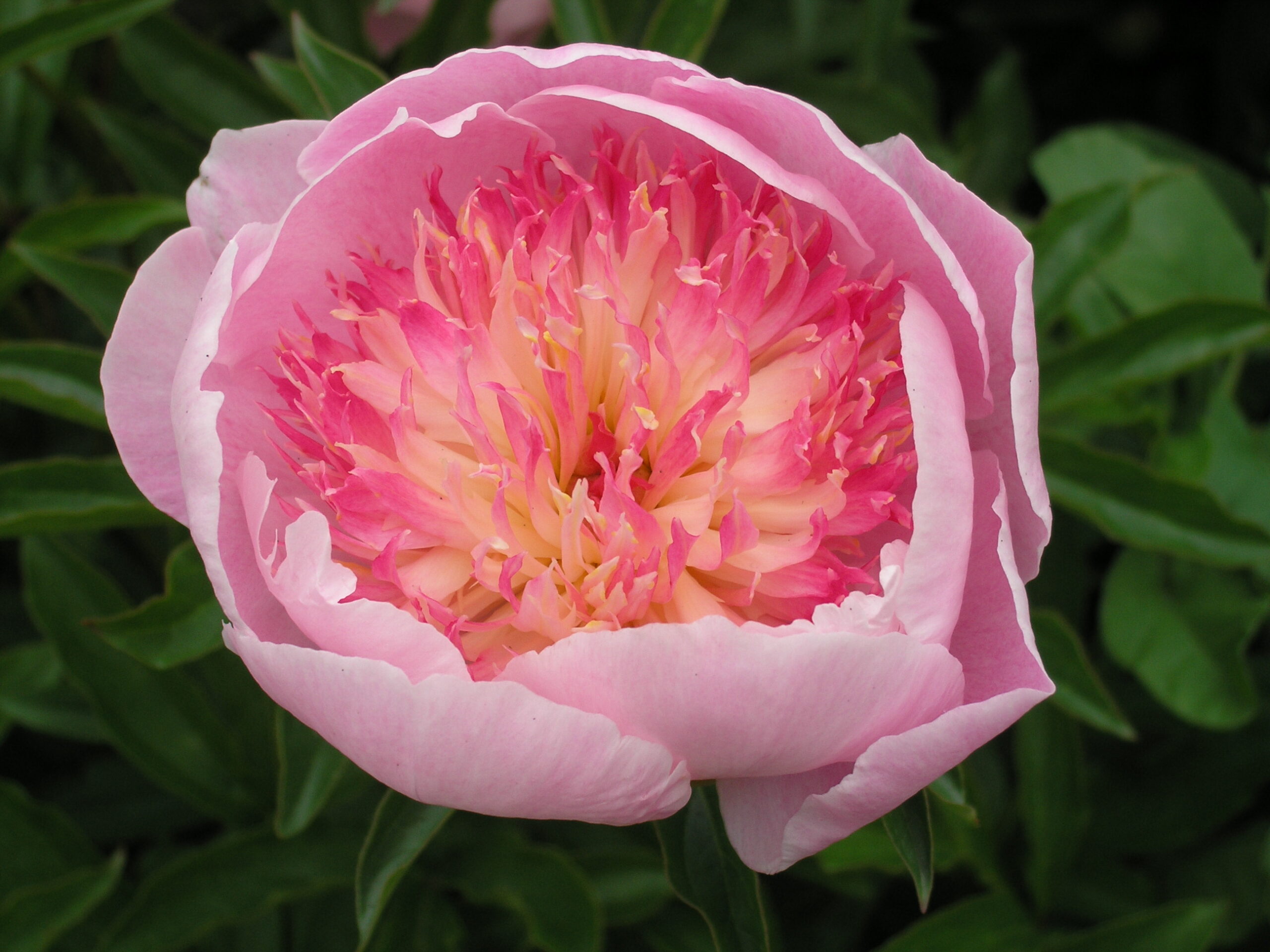 Zoriana (Gorobets, 2011) P. lactiflora. Parentage: Edulis Superba x P. lactiflora President Taft. Seed sown 1975, seedling selected 1984. Flower shape: anemone; light pink petals, flower size 12-14 cm, stamens absent, carpels glabrous, stigma pink; compact plant, strong stems, height 80-85 cm, early flowering, sets seeds. (Source: Gorobets, Vasyl, “Peonies.” National Botanic Garden M.M. Gryshko: Ukraine, 2023, 192 p.)