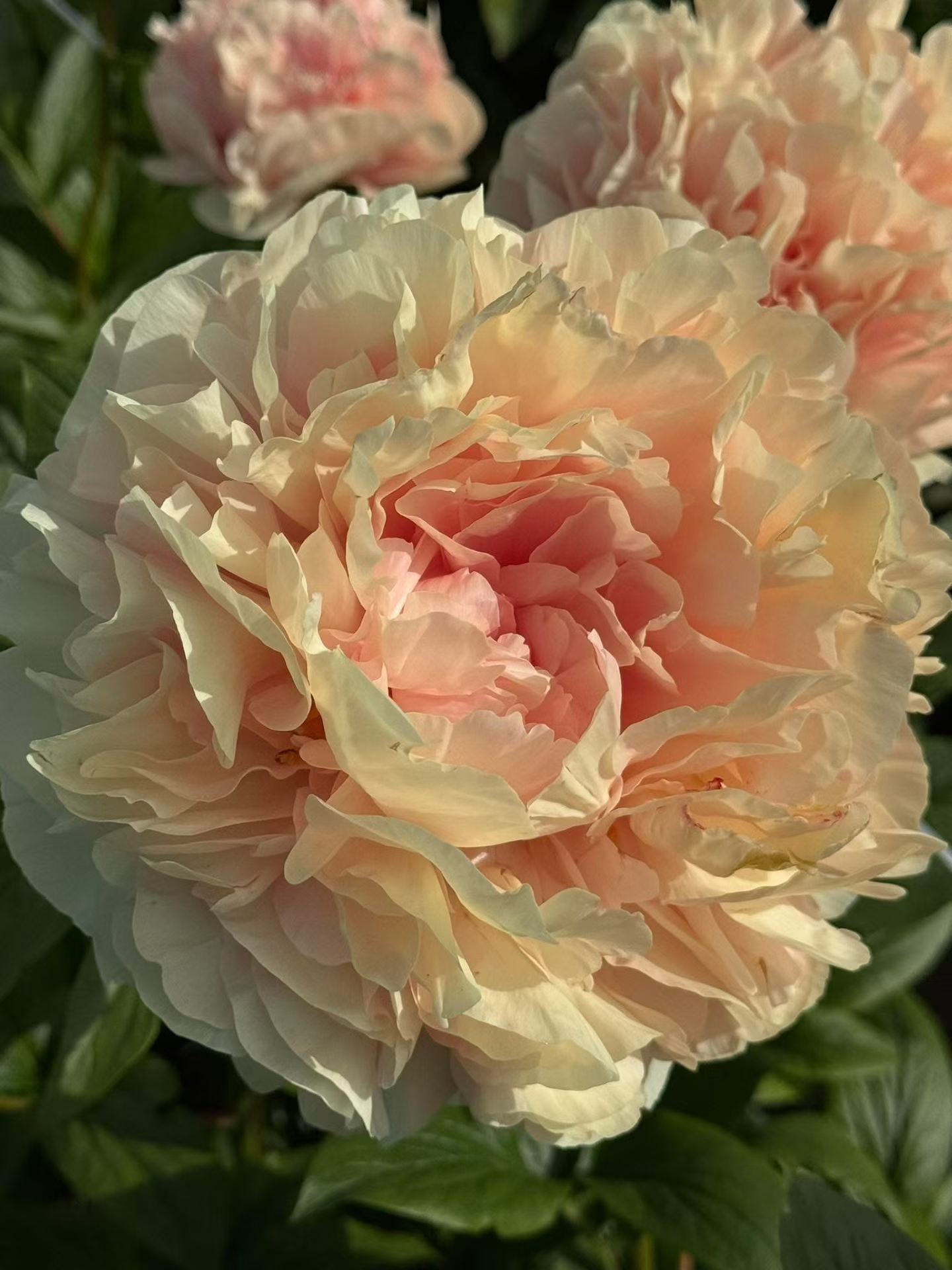 Maximus (Scholten, 2016). Seedling DT-SB-5-37. Parentage: ‘Dreamtime’ x ‘Sunny Boy’. Raised from seed bought of Bill Seidl (USA), 2009. First bloomed 2011; first propagated 2013. Huge 2 inch (5 cm), blush white buds open into large full-petaled DOUBLE blooms of 7 inch (17½ cm) size. Long-lasting flowers open blush pink, fade to creamy white. One bloom per stem. An average of three carpels, green, smooth, having red stigmas of normal morphology. Has pollen-bearing stamens and makes seeds. Fragrant. Blooms very early in the season before ‘Sunny Boy’ and with ‘Roselette’. Strong thick stems of 30 inch (75 cm) length support the heavy upright flowers. Dark green broad foliage provides appealing contrast to the flower. Named after the fictional character Roman General “Maximus Decimus Meridius,” of the movie “Gladiator”.