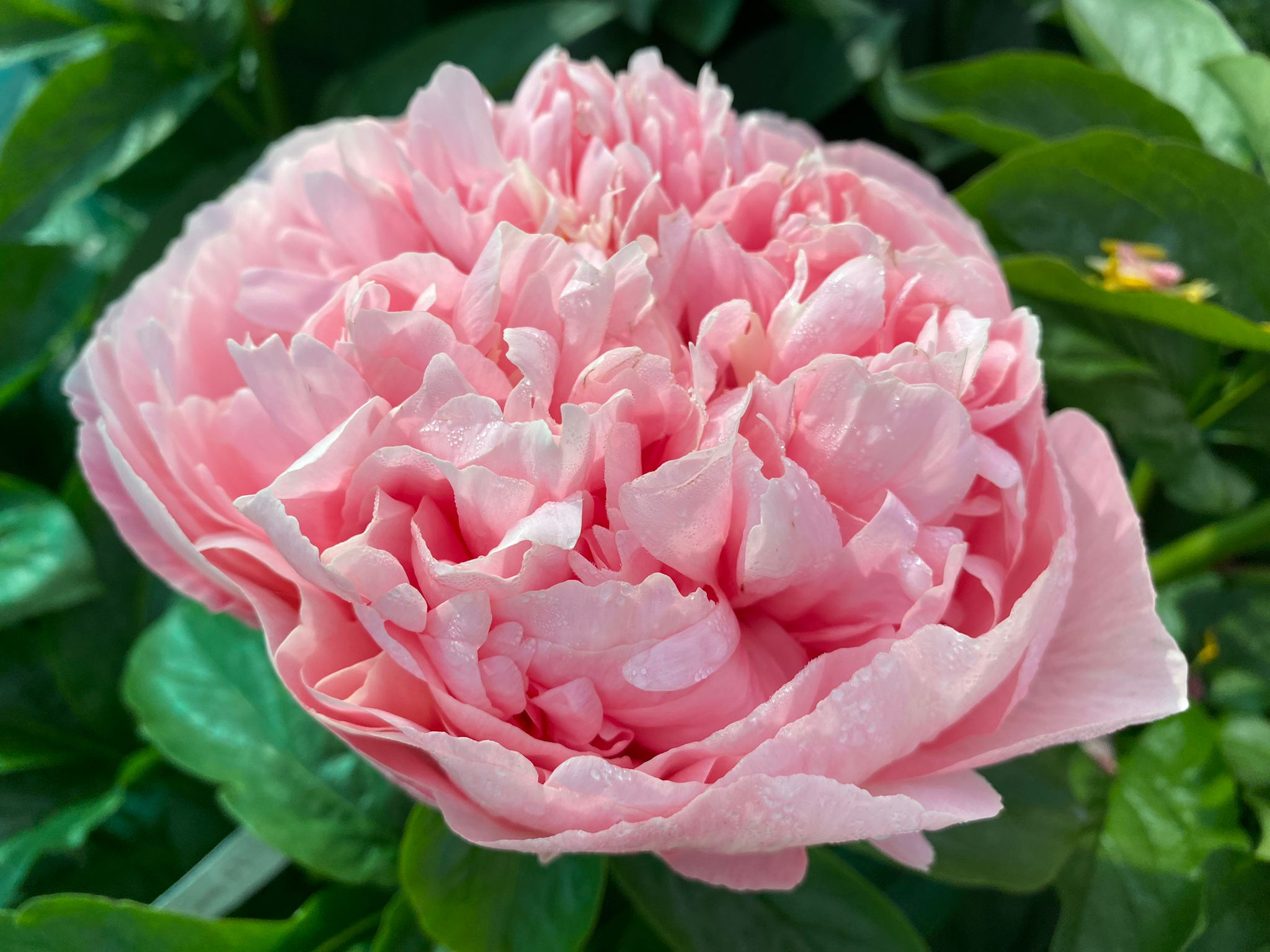 In the Lap of the Gods (Scholten, unregistered). Peony In the Lap of the Gods is a Midseason double pink Peony Herbaceous Hybrid, Out-facing, double pink, smooth flower bud opens to a large double pink flower. Outer Guard petals are frilled, ruffled and rounded. Flower size 6.3 inch / 16 cm, flower bud 1.6 inch / 4 cm, has average 3 very hairy green carpels with normal shaped dark pink stigmas, has pollen, no seeds noticed. 1 flower per stem. Vigorous grower, upright growth habit, healthy green foliage, broad pointed leaves, average height 27.5 inch / 70 cm, first year bloomed 2013, first year propagated 2015, nice garden plant. unregistered seedling.