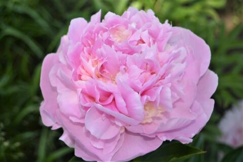 P. lactiflora variety, double (rose-type), D20 cm, soft pink, fades in the sun. Features narrow light-yellow staminodes between the petals and in the center. The bush is slightly spreading; stems are thick and strong. Height: 90 cm. Mid-season bloomer. Faint fragrance.