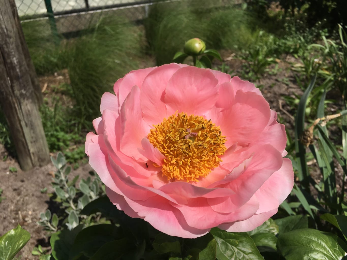 Award of Landscape Merit (ALM) description: ‘Salmon Dream’ (Reath, D.L., 1979) Herbaceous Hybrid, Early, 30″ — A light, salmon pink, semi-double with rounded, gently cupped petals that are creamier at their edges and flatten as the bloom develops. Petals possess good substance and a satin sheen. A center boss of yellow stamens surround light green carpels tipped with light pink stigmata. Younger plants are more apt to produce self-colored petaloides that emerge through its center, giving the bloom a fuller appearance. Stems are strong and erect, standing well during the bloom cycle and creating a tidy compact plant. Flowers nestle just above shiny, medium-dark green foliage that covers to the ground, a beautiful presentation of a bush in bloom. Post bloom bush is attractive. Juvenile stems and leaflets emerge chartreuse green tinged red. Moderate increase in situ. Propagates by division and has proven to be moderately adventitious. 2008 Gold Medal Winner and 2009 Peony of the Year