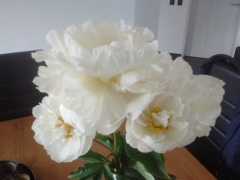 -there are 2-3 sidebuds on average, but disbudding them is discouraged simply because these sidebuds will also open perfectly well. The following picture shows a flower that was cut when then the main bud was still closed. That main flower opened well, but to my surprise then, the sidebuds also opened as well, from the first to the last, although less double; something I had never seen before. This is extremely important for a good cutflower, there are only a few peony varieties that always open well from tight buds (and many of those tend to have a short vase-life unfortunately, not a problem here). When florists are surveyed about the good and bad about peonies, one main issue always comes to the fore: peonies that don’t open well. The main offender is Sarah Bernhardt, which has to be cut rather late. A customer that buys a peony that doesn’t open well is unlikely to revisit… So peonies that always open well have a bright future ahead if you’d ask me.