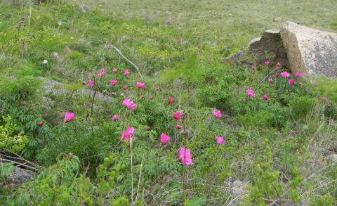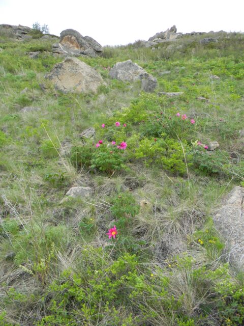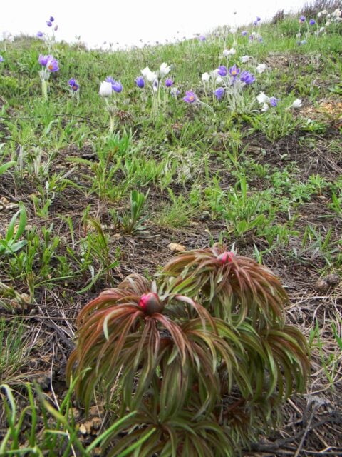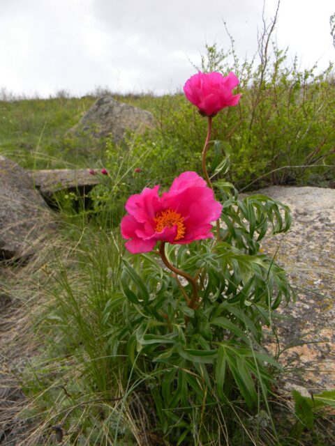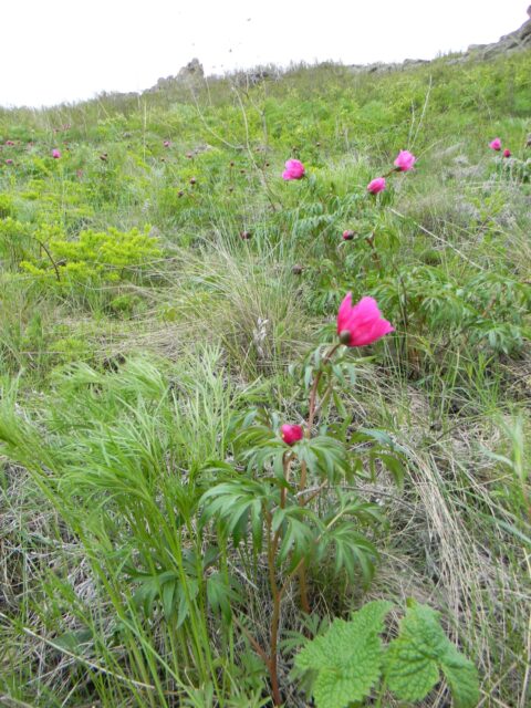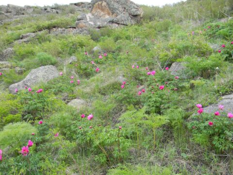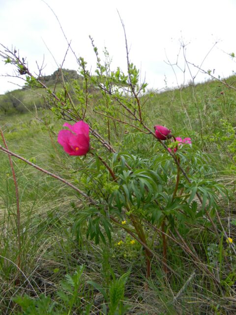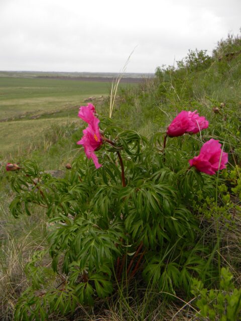 Paeonia intermedia ssp hybrida (or Paeonia hybrida var. typica) in steppe grasslands, Altai.