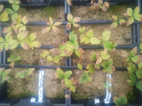 First we took some rooted seedlings from PVBM005 open pollinated, all of which had roots longer than 5 cm. We did a first test November 7th (series A) and planted them in horticultural crates, 10 to each crate, after which those crates were placed in cold storage until halfway February when they were placed in our heated greenhouse. We let them grow for an entire season and about a week ago, Nov 5th, we took them out of the crates, had a good look at them and weighed them to get an average weight per seedling after one year. The reasoning was then that the highest average weight would be the best substrate. If there would be large differences between the substrates in surviving seedlings, that might also make clear which ones would be best to grow ‘difficult’ seedlings.