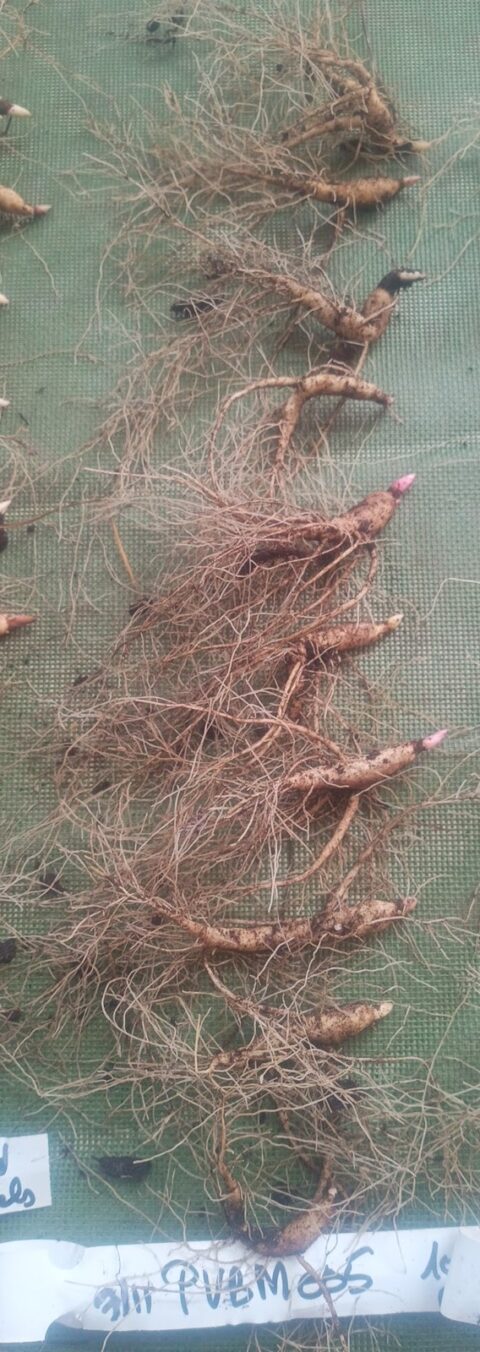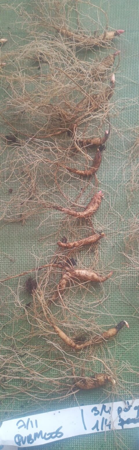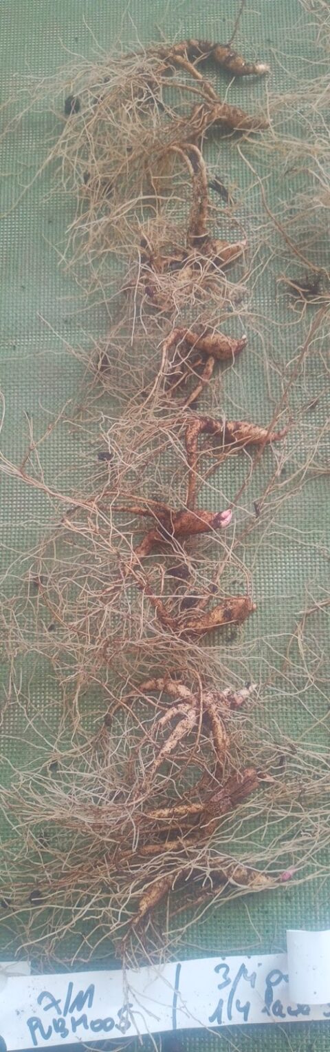 | A1 | 75 | 0 | 25 | 0 | 0 | 8/10 | 8.25 gr | Lots of fine feeder roots, a few diseased. |