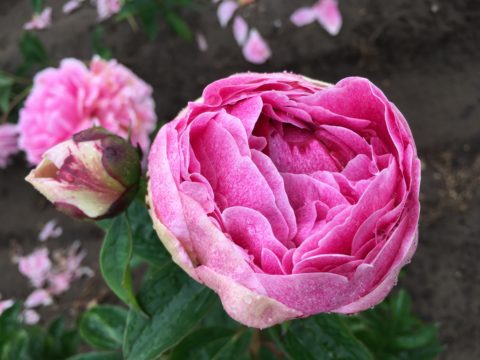 I have always had difficulty believing that a chance seedling would pop up in a commercial field, from varieties that nearly never give you any seed, and then grow into such a perfect plant. It’s unlikely, though not impossible. What would be more likely is that a very small division of The Fawn ended up in the field and grew into a fine plant which was not recognized as the variety it already was and then named ‘Pietertje Vriend Wagenaar’. I cannot be completely sure unless I see some ‘Pietertje Vriend Wagenaar’ for real of course, and the official registration has it that “The bloom has the color of Sarah Bernhardt, perhaps a little lighter”, which is not true for The Fawn as it is a deeper pink, although from time to time some paler flowers may occur (see one of the images below), depending on shadow, soil, etcetera, but on average the color difference is obvious… If any reader has an opinion about this, feel free to share it in the comments below 🙂