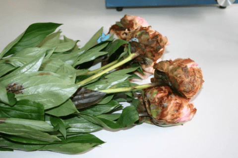 The peonies were taken out of the boxes after five weeks onwards. Van Leeuwen showed each time both what the peonies from ULO and the normally cooled ones looked like. The difference was clear. The ULO-peonies looked fresh, including the foliage. Even after 5 weeks in normal cooling those peonies showed dull, less fresh. After the treatment Van Leeuwen placed the flowers on water, without any further additions. Most flowers opened well.